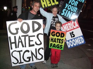 While many Christian groups are out their trying to love one another and bring about peace and unity, Phelps is creating a great divide between his church and those outside its walls. His message of hatred does damage to Christianity as a whole. It’s not often that one can “hate” someone into the Kingdom of Love.
