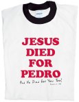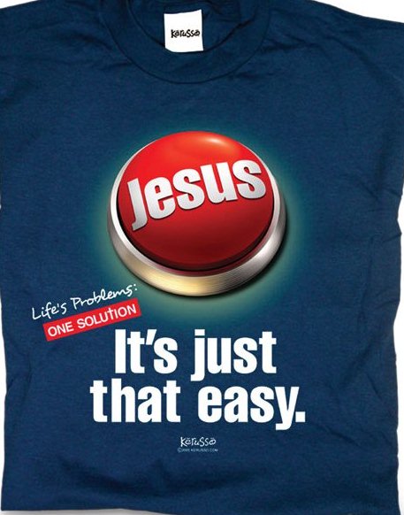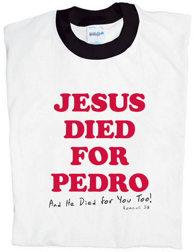 Okay, so on second thought, maybe Christian t-shirts are not great. Let’s call a spade a spade. Most Christian t-shirts are cheesy. They play off of something in popular culture and “Christianize” it…trying to redeem it…trying to say, “look, we’re hip, we’re cool, we’re relevant”. And, generally, it’s lame.