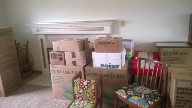 The boxes are filled with our “stuff”.